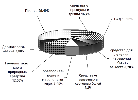 Можно также предположить, что он ближе к фазе насыщения, чем рекламный рынок в целом. Об этом можно судить по сокращению его доли на всем рекламном рынке в 2002-2003 гг. по сравнению с 2001 г. (табл. 2). Таблица 2. Доля рекламы ОТС и БАД в общем объеме рекламы