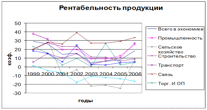 Рис.4. Коэффициент рентабельности продукции предприятий и организаций основных отраслей экономики Сразу бросается в глаза падение рентабельности выпускаемой продукции на рынке, хотя и имеется наметившееся повышение ее в настоящее время (только не известно надолго ли). Ряд отраслей вообще являются убыточными, другие находятся на грани наступления убытков, что при российском колебании рыночной конъюнктуры не так уж и обнадеживает. И только ряд отраслей, имеющих передовые технологии и выполняющие ряд уникальных услуг, пребывают в относительном спокойствии по поводу рентабельности своей продукции. Вследствие этого, прибыль как источник финансирования является также и одним из самых плохо прогнозируемых, т.к. нет уверенности в том, а получит ли предприятие ее в будущем и будет ли достаточным ее объем. Еще одним из источников в привлечении собственных средств можно выделить дополнительную эмиссию акций для акционерных обществ. Она осуществляется в основном для привлечения средств для финансирования какого-либо крупного проекта. При этом всегда параметры проекта известны, и планировать эмиссию легко. Однако самым сильным тормозящим фактором является опять-таки зарегулированность процесса эмиссии государством, что и привело к тому, что эмиссию осуществляет лишь несколько крупных предприятий в год по всей России. Хотя с целью изменения структуры собственников, такая эмиссия проходит чаще, но из-за «подвешенности» состояния предприятия при переделе собственности – эти средства в лучшем случае уходят на текущее финансирование. Таким образом, получается, что самым стабильным и хорошо прогнозируемым источником становятся доходы от сдачи имущества в аренду. Но в подавляющем большинстве случаев это идет во вред основному производству. В погоне за «легкими» деньгами и сиюминутной выгодой, а подчас и из корыстных побуждений, в качестве арендных площадей используют производственные площади с уникальным оборудованием, которое демонтируется, и практически после этого никогда не используется. Поэтому в российской практике для финансирования деятельности предприятия за счет собственных средств, стабильных источников такого финансирования не существует. Но единственно желательным источником все-таки является прибыль предприятия. Глава 2. Методические вопросы анализа состава и структуры собственного капитала 2.1 Показатели, характеризующие состояние собственного капитала 2.1.1 Факторы роста собственного капитала Темпы роста собственного капитала (отношение суммы реинвестированной прибыли к собственному капиталу) зависят от следующих факторов: · рентабельности продаж (Rрп) – отношение чистой прибыли к выручке; · оборачиваемости капитала (Коб) – отношение выручки к среднегодовой сумме капитала; · структуры капитала (Кз), характеризующей финансовую активность предприятия по привлечению заемных средств (отношения среднегодовой суммы валюты баланса к среднегодовой сумме собственного капитала); · доля отчислений чистой прибыли на развитие производства (Дотч) (отношение реинвестированной прибыли к сумме чистой прибыли). Для расчета влияния данных факторов на изменение темпов роста собственного капитала можно использовать следующую модель, предложенную А.Д. Шереметом и Р.С. Сайфулиным: