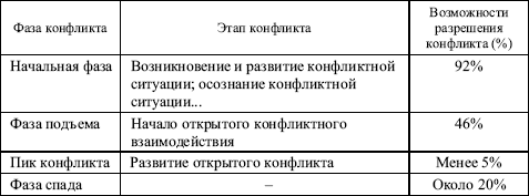 Рис. 2.3. Фазы конфликта Таблица 2.3 Соотношение фаз и этапов конфликта