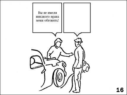 Оценка результатов Отклонение влево от показателя «3» по среднему арифметическому по всем позициям свидетельствует о том, что вы обладаете достаточными признаками «мудрого поведения» в конфликте. Отклонение вправо от выбранного показателя свидетельствует о том, что вы не обладаете достаточными признаками «мудрого поведения» в конфликте. В этом случае вам необходимо обратиться к технологиям рационального поведения в конфликте и заняться тренировками. Упражнение 3. Развитие эмпатии [5] 1. Подумайте, способны ли вы отвечать на такие вопросы: «Что я сейчас переживаю?», «Чего я в данный момент хочу?», «Зачем я это делаю?». Если вы умеете отдавать себе в этом отчет, у вас есть способность мыслить за других. 2. Подумайте и решите, почему в одинаковых ситуациях вы иногда действуете одним образом, а иногда – другим. Вспомните конкретные события. Нужно знать причины своих действий. Это поможет вам понимать причины действий других. 3. Назовите (про себя) имя человека, который вам неприятен. Решите, в чем здесь причина. 4. Вспомните случай, когда в беседе ваш собеседник отстаивал, как вам думается, совсем абсурдную точку зрения. Почему он это делал? 5. Были ли случаи, когда вы, слушая оратора, думали, что он говорит одно, а подразумевает другое? Почему вы так думали? 6. Если вы хотите развить свою способность понимать переживания и намерения других людей, выработайте у себя привычку наблюдать. • Обратив внимание на какого-нибудь человека, оцените его эмоциональное состояние. • Научитесь слушать других людей. • Перед тем как что-нибудь предлагать или высказать просьбу, подумайте, могут ли вам возразить? • Наблюдая за человеком, попробуйте угадать, во что этот человек будет одет в следующий раз. Часто ли подтверждаются ваши прогнозы? • Когда смотрите по телевизору художественные фильмы, периодически выключайте звук. При этом старайтесь не терять нити событий. Это поможет вам развить способность идентифицировать себя с другими лицами. 7. Когда будете в картинной галерее, понаблюдайте за людьми, которые будут внимательно рассматривать картину: а) изображающую радостное событие и б) изображающую печальные или трагические события. Сравните поведение двух групп людей, обратив внимание на их лица, осанку, жесты, характер переговоров между ними. Заметили ли вы разницу? Упражнение 4. Деструктивное (разрушительное) поведение [6] Цель упражнения. На основе анализа собственного стиля поведения выявить «саботажников общения», используемых нами сознательно или бессознательно. Задание. Проанализируйте свой стиль общения, если вам кажется, что вы одиноки среди людей и загнаны в угол. Заполните пустые колонки в приведенной ниже таблице. Каких «саботажников общения» используете вы для подрыва конструктивного общения с другими? К каким из них прибегают другие в отношении вас самих? Кто это делает: ваши начальники, коллеги, подчиненные? Перечисленные в таблице фразы становятся особенно разрушительными, когда они высказаны презрительным тоном и с амбициозной мимикой, сопровождаются агрессивными жестами и позами.