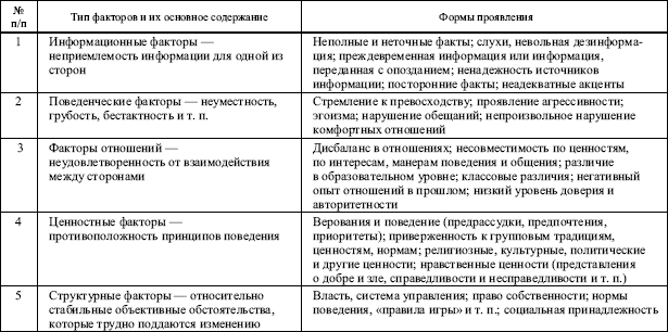 Таблица 9.3 Причины и факторы межличностных конфликтов по В. Линкольну