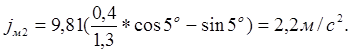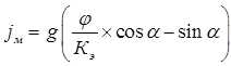 где g – ускорение свободного падения, м/с2 ; jx - коэффициент сцепления дорожного покрытия; Кэ – коэффициент эффективности тормозной системы; a - продольный уклон дороги, град.; Значение jм , зависит от коэффициента сцепления. Для мокрого асфальтобетона jx=0,3-0,4. Поэтому и jм рассчитываем для двух значений jx . Расчет Va также ведется для двух значений jм :