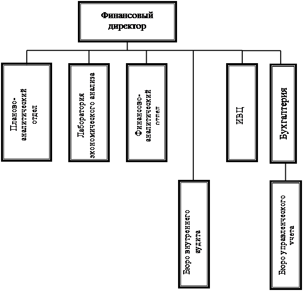 1.2.4 Блок «Управление финансовой деятельностью» Укрупнённый блок «Управление финансовой деятельностью», возглавляемый финансовым директором, выполняет в масштабах всего предприятия следующие функции: экономический анализ и перспективное планирование; технико-экономическое планирование; организацию системы хозяйственного расчёта и экономического стимулирования; калькуляция и ценообразование; организацию труда и заработной платы, финансовое обеспечение; научную организацию труда и управления производством [5]. Финансовый директор осуществляет руководство организаций и совершенствованием экономической деятельности предприятия, направленной на достижение наибольших результатов при наименьших затратах материальных, трудовых и финансовых ресурсов, ускорение темпов роста производительности труда, повышение рентабельности производства и снижение себестоимости продукции, обеспечивая правильное соотношение роста производительности труда и средней заработной платы. Кроме того, считаю целесообразным финансовому директору подчинить бухгалтерию, осуществляющей функцию бухгалтерского учёта и отчётности, с передачей полномочий по руководству от генерального директора. Задачи планово-аналитического отдела: - Руководство работой по экономическому планированию на предприятии, направленному на организацию рациональной хозяйственной деятельности, выявление и использование резервов производства с целью достижения наибольшей экономической эффективности; - Организация комплексного экономического анализа деятельности предприятия и участия в разработке мероприятий по ускорению темпов роста производительности труда, эффективному использованию производственных мощностей, материальных и трудовых ресурсов, повышению рентабельности производства [2]. Лаборатория экономического анализа осуществляет руководство работой по комплексному экономическому анализу производственно-хозяйственной деятельности предприятия с целью более рационального использования производственных мощностей, материальных и трудовых ресурсов, сокращения объёмов незавершённого производства, повышения экономической эффективности и рентабельности производства [2]. Финансово - аналитический отдел занимается организацией финансовой деятельности предприятия, направленной на обеспечение финансовыми ресурсами заданий плана, сохранности и эффективного использования основных фондов и оборотных средств, трудовых и финансовых ресурсов предприятия, своевременности платежей по обязательствам в государственный бюджет, поставщикам учреждениям банков [2]. Отдел управленческого учета (ОУУ) создаётся для организация и проведения учёта финансово-хозяйственной деятельности, контроля за расходом финансовых и материальных средств. К основным функциям ОУУ относят следующие: - составление отчётных калькуляций себестоимости продукции, бухгалтерских балансов и других видов бухгалтерской отчётности; - организация расчётов по заработной плате с работниками предприятия; - своевременное проведение инвентаризации денежных средств и товарно-материальных ценностей, а также ревизий в подчинённых хозяйствах с самостоятельными бухгалтерскими балансами; - выявление внутрихозяйственных резервов и непроизводственных расходов [2] С целью повышения 