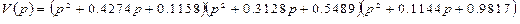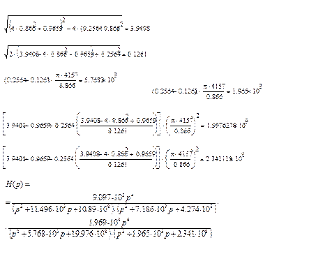 Порядок передаточной функции Н(р) полосно-пропускающего фильтра вдвое превышает порядок их ФПНЧ, поэтому полином V(p), полученный частотным преобразованием полинома