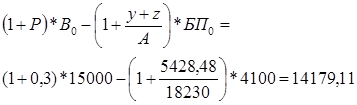 ДЗ = ДЗ0 + z ДЗ = 9100 + 2333,33 = 11433,33 грн КП = ЗС + КЗ КП = 4296,3 + 10194,75 = 14491,05 грн А = ОА + ВА А = 21446,75 + 430 = 21876,75 грн П = КР + КП КР = А – КП КР = 21876,75 – 14491,05 = 7385,70 грн Шаг 8. Рассчитаем прирост запасов. y = (y + z) – zy = 3646,75 – 2333,33 = 1313,42 грн Шаг 9. Рассчитаем прогнозное значение себестоимости продукции. С = min