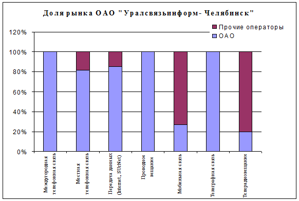 Рисунок 1.1 Доля Челябинского филиала ОАО “Уралсвязьинформа”на телекоммуникационном рынке 1.2 История развития - 1872 г. - - - - - - 1932 г. - 1934 г