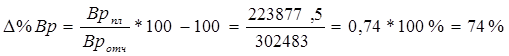 вычисляем процент изменения прибыли от продаж продукции в плановом периоде по сравнению с отчетным: