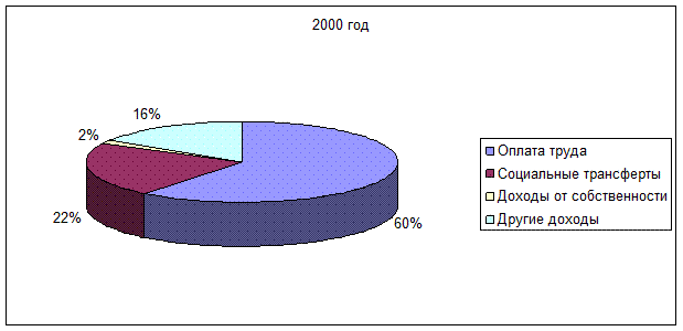 Рисунок 2.4 – Структура денежных доходов населения в 2000 году ( в % итогу) Примечание – Источник: [15, с. 513, рис.4]