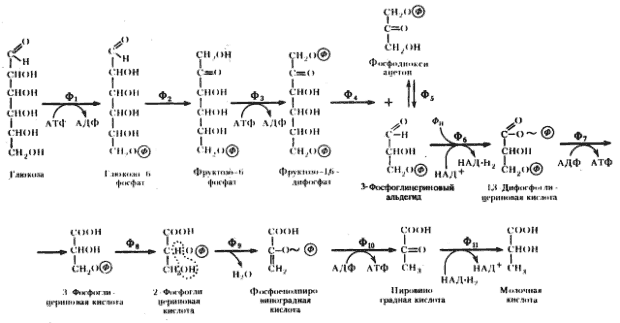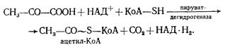 Процесс катализируется пируватдегидрогеназным комплексом и практически необратим. В результате образуется ацетил-КоА, содержащий высокоэнергетическую тиоэфирную связь, ацетильная группа с которого переносится на неорганический фосфат, что приводит к образованию ацетилфосфата и регенерированию кофермента А: