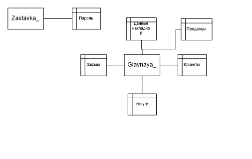 Программа должна обеспечивать выполнение следующих функций: - ввод исходных данных клиента при оформлении заказа; - расчет стоимости заказа; - сохранение информации о поступивших услугах; - ввод и сохранение данных о накладной; - изменение пароля доступа к программе; - вывод прайс-листа на печать; - вывод накладной на печать; - предоставление справки о работе программы; 2. ТЕХНИЧЕСКИЕ ХАРАКТЕРИСТИКИ2.1 Постановка задачиАвтоматизация управленческой деятельности предполагает формирование электронной системы организации. Основными преимуществами разработки такой системы могут быть: - уменьшение времени обработки входящей информации и получение результатных данных; - повышение степени достоверности выходящей информации; - снижение трудоемкости и количества ошибок при решении задачи. В программе должны быть реализованы следующие функции: - ввод исходных данных клиента при оформлении заказа. - расчет стоимости заказа - сохранение информации о поступивших услугах - ввод и сохранение данных о накладной - изменение пароля доступа к программе - вывод прайс-листа на печать - вывод накладной на печать - предоставление справки о работе программы Выполнение всех выше перечисленных функций осуществляется следующим образом: 1. автоматизация ввода, контроля, загрузки данных первичной информации в базу данных с использованием экранных форм: -окно просмотра и изменения информации таблиц: клиенты, продажи, товар; -окно продажи товара; 2. ведение условно-постоянной информации, хранящейся в таблицах базы данных: -организация входа в систему; 3. выдача справочной информации: -Прайс-лист -справочник пользователя (инструкции по работе с информационной системой); 4. отчеты о проданном товаре: -формирование накладной. Таблица 3. Перечень таблиц, хранящих входную информацию.