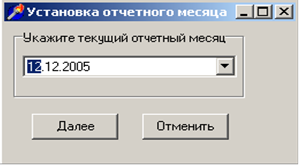 Рисунок 3.12 - Окно "Отчетный месяц" При нажатии кнопки "Далее" появляется окно для ввода показаний (рисунок 3.13).