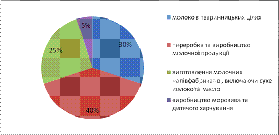 Рис 3.1. Структура експорту молочної продукції України У зв'язку з відновленням експорту в Україні, рентабельність виробництва твердого сиру в середньому по ринку України зросла приблизно на 8%.