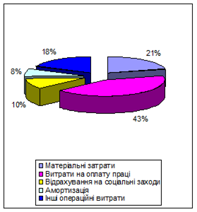 Розглянемо статті витрат у динаміці, для цього звернемось до попередньої таблиці. В таблиці добре видно, що відбулося зростання по всім статтям. Найменшим темпом зростання характеризуються витрати зі статті «Інші», найвідчутніше зросли матеріальні витрати, а також амортизація. Останнє пояснюється тим, що протягом двох років було встановлено нове обладнання, на яке й нараховано більше амортизаційних відрахувань.