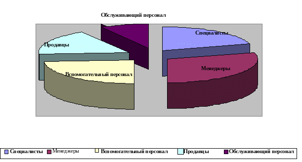 Приложение 3 Рис. 1. Структура персонала офиса продаж ОАО "МТС" Приложение 3 Таблица 3. Стаж работы персонала офиса продаж ОАО "МТС" в 2010 г.