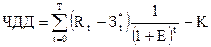 t – шаг расчета. Е – норма дисконта, равная норме прибыли на капитал и принимаемая инвестором самостоятельно. При принятии нормы дисконта ориентиром служат следующие показатели: процент по банковским депозитам, дивиденды по акциям крупных надежных фирм, рентабельность действующего производства. Эффективность инвестирования проекта определяется на основе следующих показателей: 1) ЧДД – Чистый Дисконтированный Доход. 2) ИД – Индекс Доходности. 3) ВНД – Внутренняя Норма Доходности. 4) Т – Срок Окупаемости. 1. ЧДД (NPV)