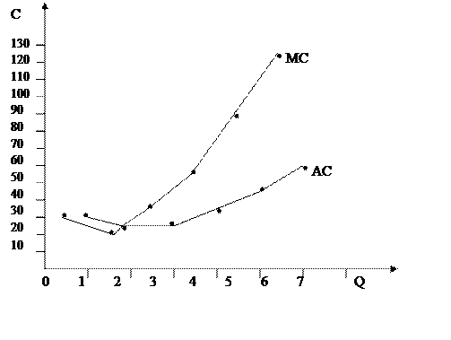Предельные издержки рассматриваем по формуле: Построив на основе имеющихся данных график, можно легко определить объем производства, который выберет предприятие при цене товара 5 тыс. тг. На рис. 1 видно, что МС=MR=Р при объеме выпуска продукции 3 шт. в единицу времени, именно этот объем выпуска и выберет предприятие.