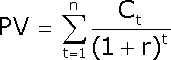 д) сравнить инвестиционные затраты С0 с приведенной стоимостью PV: если PV > C0, то реальное средство можно покупать; если PV < C0, то приобретать не надо; если PV = C0, то реальное средство можно и покупать, и не покупать (то есть с экономической точки зрения инвестирование в реальное средство не имеет никакого преимущества по сравнению с вложением денег в ценные бумаги или в другие объекты). Если инвестиционный проект рассчитан на несколько шагов (в частности, n лет), то для нахождения приведенной стоимости будущих доходов по проекту необходимо дисконтировать все суммы С t , которые должен обеспечить проект: