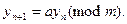 В алгоритме Лемера задаются два соответствующим образом подобранных целых числа: множитель a и модуль m. Последовательность случайных чисел вычисляется следующим образом. 1) Число 2) Число