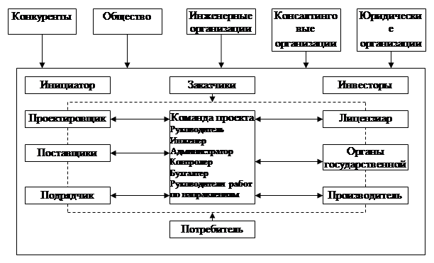 Организационный механизм реализации инвестиционного проекта. Организационный механизм реализации инвестиционного проекта – это форма взаимодействия участников проекта, фиксируемая в проектных материалах в целях обеспечения реализуемости проекта и возможности учета интересов каждого участника инвестиционного процесса. Организационный механизм реализации инвестиционного проекта включает: - нормативные документы, на основе которых осуществляется взаимодействие участников, - обязательства, принимаемые участниками в связи с осуществлением ими совместных действий по реализации проекта, гарантии таких обязательств и санкции за их нарушение, - условия финансирования инвестиций, в частности основные условия кредитных соглашений (сроки кредита, процентная ставка, периодичность уплаты процентов), - особые условия оборота продукции и ресурсов между участниками (например, использование бартерного обмена, льготных цен для взаимных расчетов, предоставление товарных кредитов, безвозмездная передача основных средств в постоянное или временное пользование), - систему управления реализацией проекта, обеспечивающую (при возможных изменениях условий реализации проекта) синхронизацию деятельности отдельных участников, защиту интересов каждого из них и своевременную корректировку их последующих действий в целях успешного завершения проекта, - меры по взаимной финансовой, организационной и иной поддержке (предоставление временной финансовой помощи, займов, отсрочек платежей), включая меры государственной поддержки, - основные особенности учетной политики каждого российского предприятия-участника, а также иностранных фирм-участников, получающих на российской территории доходы от участия в проекте. Основные участники инвестиционного проекта.