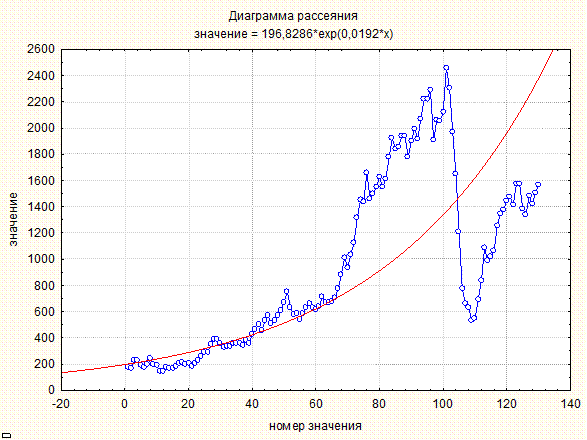 Рис. 5. Экспоненциальная функция индекса РТС Таблица 2 Ошибки модели.