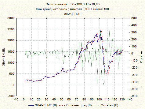 Рис. 6 Модель Хольта при α=0,9, γ=0,1