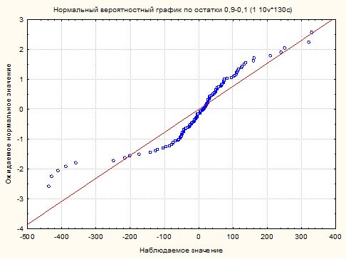Рис. 8 Нормальный вероятностный график остатков Таблица 3 Ошибки модели.