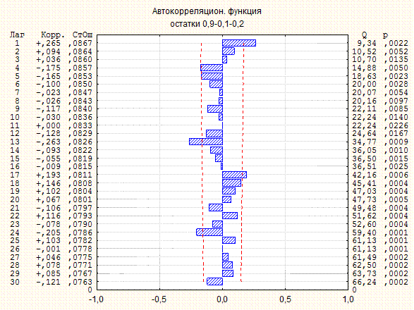 Рис. 10 . Автокорреляционная функция остаточной компоненты