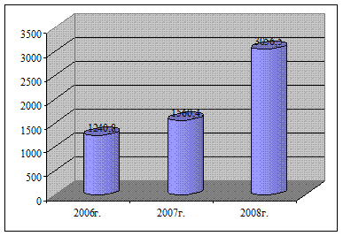 Рисунок 8. Объем безналичных платежей по карточкам В связи с увеличением количества выпускаемых карт привлечены ресурсы за счет увеличения остатков на карточных счетах. Среднемесячные остатки на карточных счетах увеличились по сравнению с 2007 г. на 96% и составили в 2008 г. 3 056,5 млн. тенге, в 2007 г. они составляли 1 560,4 млн. тенге (рисунок 9).