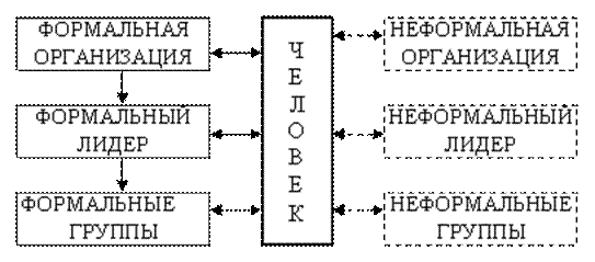 Рисунок 2 - Участники организационного поведения Если исходным в рассмотрении взаимодействия человека и организационного окружения выступает человек, то это взаимодействие может быть описано следующим образом. - Человек, вступая во взаимодействие с организационным окружением, получает от него стимулирующие воздействия. - Человек под влиянием этих стимулирующих сигналов со стороны организационного окружения осуществляет определенные действия. - Действия, осуществляемые человеком, приводят к выполнению им определенных работ и одновременно оказывают воздействие на организационное окружение (рис. 3). При таком рассмотрении в организационное окружение включаются те элементы организационной среды, которые взаимодействуют с человеком. Стимулирующие воздействия охватывают весь спектр возможных стимулов: речевые и письменные сигналы, действия других людей, световые сигналы и т.п. В модели человек предстает как биологическое и социальное существо с определенными физиологическими и иными потребностями, опытом, знанием, навыками, моралью, ценностями и т.п. Реакция на стимулирующие воздействия охватывает восприятие этих воздействий человеком, их оценку и осознанное или неосознанное принятие решения об ответных действиях.