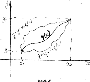 у f^ jc^ = y^ + с/. ^ ^ , где ^ ^ -произвольная функция, но ц (зе^)^ И ( v. s.}~- C> (см .рис. 9). '.( - i A Тогда при малых об для кривых L/( o[^ oc,) интеграл (1) будет принимать значения близкие к минимальному и зависит от параметра^: . Vi (з) Если мы предположим, что функция у^ доставляет минимум J^v, то необходимое условие минимума будет: ^/, oL - JW ^^ ^ Продифференцируем (3) по Л: