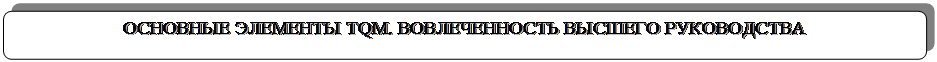 Постоянное и непрерывное личное участие высшего руководства в управлении качеством - залог успешной работы организации в обеспечении качества. Для успешного внедрения и функционирования TQM руководитель должен:- проникнуться необходимостью TQM для организации в условиях конкурентной борьбы - включать аспекты качества в цели организации, поддерживать их и морально, и финансово - организовать оптимальную работу системы для достижения целей - принимать активное участие в улучшении процесса - понимать сам и обеспечивать понимание всеми, что качество так же важно, как стоимость продукции и время ее поставки - быть одинаково внимательным к требованиям и внешних, и внутренних потребителей - владеть системой Profound Knowledge.