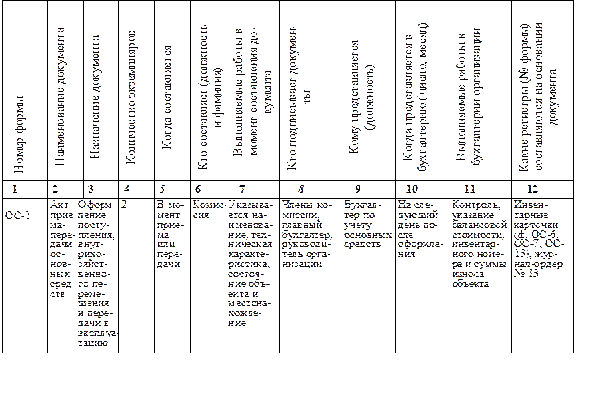 Принял Башкиров Сдал Хомутов Рисунок 1. Приходный ордер Накопительные документы служат для оформления однородных операций, совершаемых на предприятии в разное время (за неделю, декаду, полмесяца). Их составляют с целью уменьшения числа выписываемых документов по тем операциям, которые производятся на предприятии многократно в течение короткого времени. Например, дневной заборный лист на отпуск сырья со склада или готовых блюд из производства, лицевые счета по заработной плате, табель учета рабочего времени, ведомость выполненных работ и т.п. По месту составления документы делятся на внутренние и внешние. Внутренние документы составляются внутри предприятия. Ими оформляются хозяйственные операции, совершаемые только внутри предприятия. Эти документы не выходят за пределы предприятия, например расчетно-платежные ведомости, приходные и расходные кассовые ордера и др. Внешние документы составляют вне данного предприятия, и ими оформляются операции, осуществляемые между предприятиями. Например, счета, накладные, счета-фактуры контрагентов. Отдельные внутренние документы в результате совершаемых хозяйственных операций становятся внешними, например денежные чеки, платежные поручения. При заполнении внутренних документов достаточно указать только обязательные реквизиты, а при составлении внешних документов необходимо еще добавить дополнительные реквизиты документов для полноты характеристики хозяйственной операции[4] . По степени использования средств вычислительной техники при оформлении документов их подразделяют на документы, заполняемые вручную, частично заполненные на машинах (т.е. документы, составленные на фирменных бланках) и полностью выполненные на машинах (расчетно-платежная ведомость, накладная, счет-фактура, инвентаризационная опись). Первичные документы должны быть своевременно переданы в бухгалтерию, где их проверяют и принимают к учету. Затем документы направляют в архив для хранения в течение определенного срока. Путь прохождения документа с момента его составления до сдачи в архив называется документооборотом. Четкая организация документооборота обеспечивает полноту и своевременность получения необходимой информации о работе предприятия и отдельных лиц, что повышает действенность бухгалтерского контроля. Документооборот регламентируется графиком, составление которого осуществляет главный бухгалтер. График утверждается приказом руководителя предприятия, после чего главный бухгалтер доводит его до всех структурных подразделений и исполнителей, связанных с составлением тех или иных документов. В приложении 2 приведена примерная схема графика документооборота (на примере составления документов по учету основных средств).