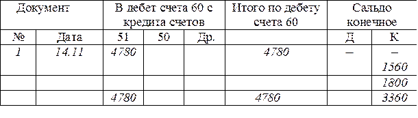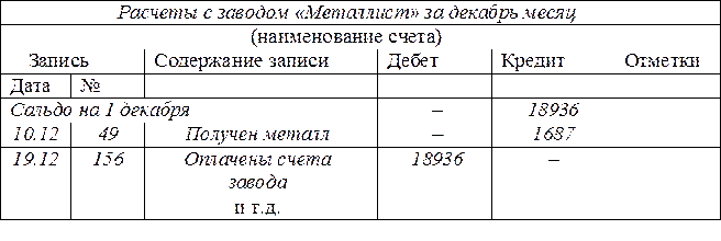 Приложение Г Контокоррентная форма регистров аналитического учета
