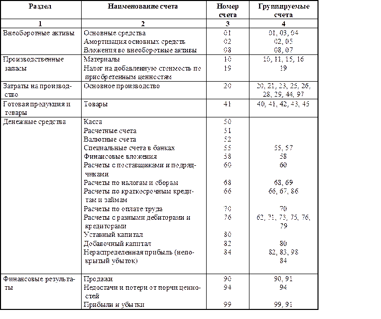 Приложение Л Группировка счетов отдельных хозяйственных операций
