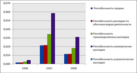 С помощью диаграммы можно более наглядно представить динамику рентабельности предприятия за 2006-2008 гг. (рис. 2).