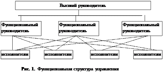 Значение сбытовых, производственных и финансовых функций предприятия широко признано, и зачастую они берутся за основу структуры организации. Координация этих функций определяется на уровне, выше которого находится лишь руководитель предприятия. Данное положение верно независимо от того, на какой основе проводится группировка видов деятельности внутри предприятия и насколько важны функции того или иного подразделения. Цепочка команд поступает от президента (исполнительного директора) и пронизывает структуру сверху донизу. Руководство организацией сбыта, финансовыми вопросами, обработкой данных и другими функциями, которые свойственны конкретному предприятию, осуществляется вице-президентами. Управляющие отчитываются передними. И так далее вниз по иерархической лестнице задачи подлежат дальнейшему функциональному дроблению в соответствии с процессами. Функциональная организация направлена на стимулирование качества труда и творческого потенциала работников, а также экономии, обусловленной ростом масштаба производства товаров или услуг. Вместе с тем поддержание взаимодействия между разными функциями — задача сложная. Реализация различных функций предполагает разные сроки, цели и принципы, что делает трудными координацию деятельности и ее календарное планирование. Кроме того, функциональная ориентация связана с предпочтением стандартных задач, поощрением узко ограниченных перспектив и ведением отчетности о результатах деятельности. Функциональная структура не подходит для организаций с широкой номенклатурой продукции, действующих в среде с быстро меняющимися потребительскими и технологическими потребностями, а также для организаций, осуществляющих деятельность в международном масштабе, одновременно на нескольких рынках в странах с различным законодательством. Логика этой формы - централизованно координируемая специализация. В ней трудно проследить вклад каждого элемента ресурсов в конечный результат и общую прибыльность организации. В действительности современная тенденция к дезинтеграции (т. е. покупка, а не производство комплектующих частей и т. д.) отражает понимание многими фирмами того, что необходимая координация затрат и используемых ресурсов отражается на результатах деятельности. Функциональная организация может давать сбои из-за неправильной модификации, поскольку логика этой организации заключается в централизованном контроле, который нелегко адаптируется к продуктовой диверсификации. В чистом виде функциональная структура практически не применяется. Она используется в органическом сочетании с линейной структурой (рис. 2), построенной на основе вертикальной иерархии управления и базирующейся на строгой подчиненности низшего звена управления высшему. При таком построении выполнение узкоспециализированных функций переплетается с системой подчиненности и ответственности за непосредственное выполнение задач по проектированию, производству продукции и ее поставке потребителям (рис. 3).