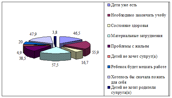 Рис. 2.3. Факторы, обуславливающие снижение репродуктивных установок сельской молодежи, %