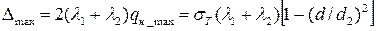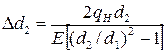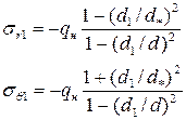 где d - посадочный диаметр; Е 1 , ν1 и Е 2 , ν2 - модуль упругости и коэффициент Пуассона соответственно для охватываемой и охватывающей деталей; d 1 - диаметр отверстия в охватываемой детали; d 2 - наружный диаметр охватывающей детали. Учитывая равенство, несложно получить: