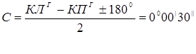 Баринова О.А.: - Определение коллимационной ошибки (С) Визирная ось трубы должна быть перпендикулярна оси вращения трубы. Устанавливают теодолит по уровню. При КП наводят теодолит на точку; снимают отчет по горизонтальному кругу. Ту же самую операцию выполняют при КЛ. Коллимационная ошибка вычисляется по формуле: