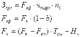 Рассчитаем по 1 операции. чтарi =22,9 руб. (для 3 разряда), t штi =0,6 мин. Отсюда Рсдi =22,9 ×0,6/60=0,23 руб. Зпр =0,23×200000=46 000 руб. Пр =0,5×46000=23 000 руб. Д =0. Зосн =(46000+23000) ×1,15=79 350 руб. Здоп =0,17×79350=13 489,5 руб. ФЗП =13489,5+79350=92 839,5 руб. Расчет прямой заработной платы для вспомогательных рабочих - где F эф –эффективный фонд времени работы рабочего за год, час., чтарi – часовая тарифная ставка рабочего i-ого разряда, руб., n i - количество ставок i-ого разряда (см. табл. 2), F н - номинальный фонд времени работы рабочего за год, час.; b – коэффициент планируемых целодневных невыходов на работу (принимаем равным 0,1), F к – количество календарных дней в году, F вп – количество выходных и праздничных дней в году, T см – продолжительность рабочей смены, час., H ч – количество недоработанных часов в предпраздничные дни. Для всех вспомогательных рабочихF эф будет одинаков. F н =(365-115) 8-7=1993 час., F эф =1993× (1-0,1)=1793,7 час. Пример расчета ФЗП для контроллера. чтарi =20,5 руб. (3 разряд), n i =1,1 Зпр =1793,7×20,5×1,1=40 447,94 руб. Пр =0,5×40447,94=20 223,97 руб. Зосн =(40447,94 +20223,97) ×1,15=69 772,70 руб. Здоп =0,17×69 772,70 =11 861,36 руб. ФЗП =69 772,70 +11 861,36 =81 634,06 руб. Годовой фонд заработной платы РСС определяется, исходя из средних месячных окладов. Примем должностной оклад мастера равным 5000 руб. ФЗП = Зосн + Здоп
