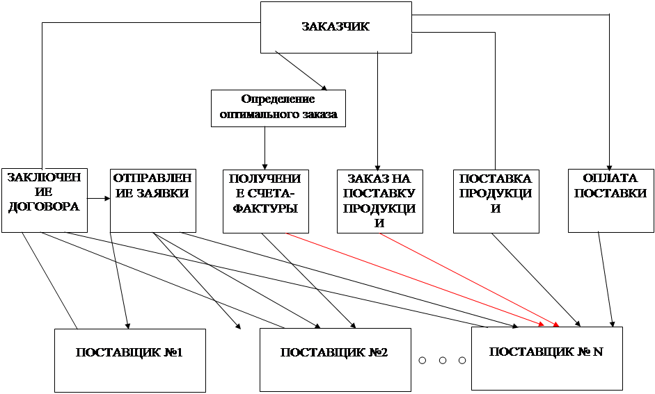 Рис 2.2 ER-диаграмма модели данных АСИС “Учет поставок” 3. Проектирование алгоритмов справочно-информационной системы учета и контроля поставок на предприятие. Алгоритмизация в самом общем виде может быть определена как процесс направленного действия проектировщика (группы проектировщиков), необходимый для выработки алгоритмов, достаточных для реализации создаваемого объекта (системы), удовлетворяющего заданным требованиям [19]. Завершающим этапом алгоритмизации является выпуск набора алгоритмов, отображающий решения, принятые проектировщиком, в форме, необходимой для производства объекта (системы). При проектировании системы я использовал три класса алгоритмов: ¨ Алгоритмы, связанные с проектированием АСИС; ¨ Алгоритмы реляционной алгебры, необходимые для работы с БД; ¨ Алгоритмы расчета необходимых показателей (вычисление задолженности предприятия по оплате поставок, определение оптимального счета-фактуры). 3.1 Выбор метода проектирования АСИС. Метод — это последовательный процесс создания моделей, которые описывают вполне определёнными средствами различные стороны разрабатываемой программной системы [18]. Методы важны по нескольким причинам. Во-первых , они упорядочивают процесс создания сложных программных систем. Во-вторых , они позволяют менеджерам в процессе разработки оценить степень продвижения и риск. Обычно методы проектирования делятся на три основные группы; · Метод проектирования сверху вниз; · Метод потоков данных; · Объектно-ориентированное проектирование. Для структурного проектирования характерна алгоритмическая декомпозиция. Следует отметить , что большинство программ написано в соответствии с этим методом. Тем не менее структурный подход не позволяет выделить абстракции и обеспечить ограничение доступа к данным; он также не предоставляет достаточных средств для организации параллелизма. Структурный метод не может обеспечить создание предельно сложных систем , и он, как правило, неэффективен в объектных и объектно-ориентированных языках программирования. Поэтому данный метод не использовался для проектирования АСИС “Учет поставок”. В методе потоков данных программная система рассматривается как преобразователь входных потоков в выходные. Метод потоков данных с успехом применялся при решении ряда сложных задач, в частности , в системах информационного обеспечения, где существуют прямые связи между входными и выходными потоками системы и где не требуется уделять особого внимания быстродействию. Но поскольку одним из основных требований предъявляемых к проектируемой АСИС является увеличение скорости автоматизации учета поставок и уменьшение временных затрат на оформление поставок на предприятии, то применение данного метода также нецелесообразно для проектирования АСИС. Объектно-ориентированное проектирование (object-oriented design, OOD)—это подход в основе которого лежит представление о том , что программную систему нужно проектировать как совокупность взаимодействующих друг с другом объектов, рассматривая каждый объект как экземпляр определённого класса, причём классы образуют иерархию. Объектно-ориентированный подход отражает топологию новейших языков высокого уровня , таких как Object Pascal, C++, Smalltalk [23] и др. Модели, для проектирования которой используется вышеназванный подхо