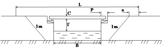 Рисунок 3.3 Расчетные схемы железобетонного моста с вертикальными стенками устоев Определяем высоту моста Нм = Н+Г+С (3.12) где, Г- подмостовый габарит, для несудоходной реки Г= 0,25 м С- высота строительной конструкции, определяется по приложению 3, страница 7 С= 0,46 м По формуле 3.12 Нм = 0,59+0,25+0,46= 1,3 м Определяем длину моста L= В+2mH+2а+2Р (3.13) где, а- расстояние от вершины конуса до вершины моста, а= 0,15-0,5 м Р- величина зазора, не менее 10 см Тогда по формуле 3.13 L= 4,8+2*1,5*1,3+2*0,1+2*0,5= 9,2 м Вывод: Величина типового пролета больше, чем величина пролетного, следовательно скорость не уточняем. 11 4 ГИДРАВЛИЧЕСКИЙ РАСЧЕТ ТРУБ 4.1 Безнапорный режим Коэффициент накопления трубы S=H/d £ 1,2 Тип оголовка – I n= 0,013