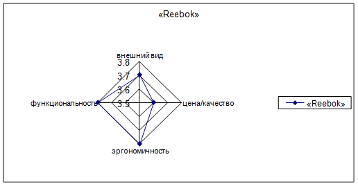 Сегмент 1 - "безразличные" потребители. По численности данный сегмент составил 77% респондентов. К данной категории респондентов относятся потребители младше 35 лет, как мужчины, так и женщины. Доход этих потребителей в среднем превышает 10000 рублей. Сегмент 2 - "благожелательные" потребители. По численности этот сегмент составил 23%. В основном сюда относятся респонденты возрастной категории с выше 35 лет. К данному сегменту относятся семьи, чей совокупный доход превышает 15000 рублей. Сегмент 3 - "отрицательно настроенные". Такой сегмент отсутствует. 3.5 Позиционирование товара Позиционирование на рынке - это обеспечение товару не вызывающего сомнений, четко отличного от других желательного места на рынке и в сознании потенциальных потребителей. Позиционирование товара показывает потенциальным потребителям, чем компания "Reebok" отличается от всех остальных того же профиля.
