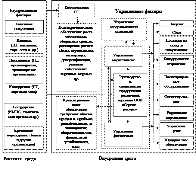 2 АНАЛИЗ БУХГАЛТЕРСКОГО УЧЕТА ФОРМИРОВАНИЯ И ИСПОЛЬЗОВАНИЯ СОБСТВЕННОГО КАПИТАЛА ПРЕДПРИЯТИЯ РОЗНИЧНОЙ ТОРГОВЛИ ООО «СЕРВИС - РЕСУРС»2.1 Краткая экономическая характеристика деятельности ООО «Сервис - ресурс» Общество с ограниченной ответственностью «Сервис - ресурс» основано в 2000 году. Предприятие осуществляет розничную торговлю через магазин непродовольственными товарами, специализируясь на продаже одежды молодежного ассортимента. Данная продукция заслуженно занимает достойное место на рынке товаров, и по уровню надежности и качеству не уступает импортным аналогам, что подтверждается постоянным успехом на российских выставках и ярмарках. Предприятие привлекает сторонние экспертные организации с целью подтверждения соответствия качества законодательным и обязательным требованиям, относящимся к продукции. На все изделия получены «Разрешения на применение». Широкий номенклатурный перечень продукции реализуемой ООО «Сервис - ресурс», а также гибкая ценовая политика осуществляемая предприятием позволила за короткий срок завоевать новые для организации рынки. Общее количество сотрудников предприятия составляет 56 человек. Отличительной чертой ООО «Сервис - ресурс» является динамика и короткие сроки при разработке и доставке заказа. Значительное внимание на предприятии уделено диверсификации – за последнее время активно развивается ряд новых направлений в реализации рыночной стратегии ООО «Сервис - ресурс». Это предприятие - юридическое лицо, обладает обособленным имуществом, имеет самостоятельный баланс, расчетный счет, печать. Учредителями являются физические лица. Высшим органом правления общества является собрание учредителей. Общество вправе распоряжаться прибылью, оставшейся после уплаты налогов и других обязательных платежей самостоятельно. Структурная схема предприятия розничной торговли ООО «Сервис - ресурс» отражена на рисунке 2.1.