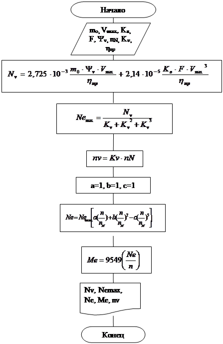 a,b,c - коэффициенты, принимаемые для бензиновых двигателей, равны 1.