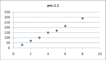 Рис.2.1 Из рисунка 2.1. видно, что исходные статистические данные достаточно разборосаны, т.е. явной закономерности не прослеживается. Результаты вычислений по исходным данным, представлены в таблице 2.1 , полностью совпадают с уже полученным уравнением регрессии. Таблица 2.4