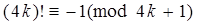 Для простого натурального числа вида , существует натуральное такое, что .