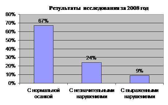 2.3 Результаты исследования В результате проведенных сравнений показателей за прошедшие три года мы видим ухудшение состояния осанки с каждым годом у 2–3 школьников. Это связано с неправильным соблюдением режима дня, мягкой постелью, неправильным сном, неправильной рабочей позой во время письма (привычка сидеть сутулясь), не правильным ношением портфеля, отсутствием ежедневной утренней гимнастики, закаливающих процедур, игр на свежем воздухе, дополнительных часов здоровья и т.д. Все эти факторы способствуют увеличению числа детей страдающих различными нарушениями.