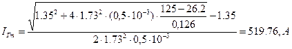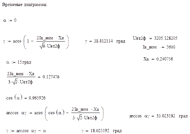 1.2 КОРОТКОЕ ЗАМЫКАНИЕ НА ШИНАХ ВЫПРЯМЛЕННОГО НАПРЯЖЕНИЯ. Для расчёта принимается наиболее тяжёлый режим развития аварии. Под нагрузкой находятся все трансформаторы и выпрямители. Короткое замыкание происходит при работе выпрямителя с углом регулирования Среднее значение тока к.з. на шинах выпрямленного напряжения для схемы с уравнительным реактором определится по выражению: