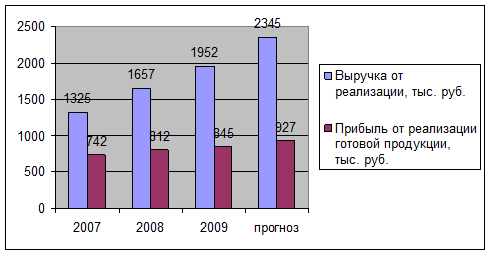 Рисунок 3.1 – Изменение фондоотдачи и фондоемкости Улучшение показателей использования основных фондов отражается на эффективности деятельности всего предприятия. Можно предполагать, что приобретение нового оборудования приведет к тому, что выручка увеличится до 2345 тыс. руб., а сумма прибыли возрастет до 927 тыс. руб. Это будет способствовать тому, что увеличиваются показатели рентабельности деятельности кафе. Динамику изменения показателей выручки и прибыли представим на рис. 3.2.